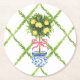 Chinoiserie Lemon Topiary Green and White Floral Round Paper Coaster