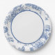 Elegant blue and white paper plate for coastal grandma, chinoiserie, or blue and white themed wedding or party.