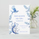 Graceful and refined, our Elegant Blue Chinoiserie Wedding Save the Date features a beautiful peacock, delicate birds, and soft florals in classic blue tones. Perfect for timeless, formal celebrations. Fully customisable.