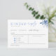 Make your wedding day uniquely yours with our customizable minimalist invite insert RSVP reply card template. This invite insert has a dusty blue flower with a place for guests to write meal food choice selection (fish, beef, vegetarian), names, dietary needs, and song requests. Personalize your invitation enclosure with easy editable text and print with Zazzle!