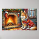 Chinook Sitting by Fireplace with Christmas Lights Poster