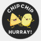 Chip Chip Hooray Funny Happy Crisps Pun Dark BG Classic Round Sticker
