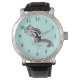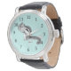 A pen and ink drawing of an adorable chipmunk enjoying an acorn adorns this watch!
