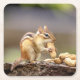 Chipmunk eating a peanut square paper coaster