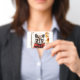 I use this mainly to show customers who I am as I go out to properties rather than they come to a shop. It’s bright enough for them to see and makes me stand out from anyone else walking by. QR code works perfectly and all writing is readable