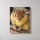A cute chipmunk stares intently at the camera from a fallen tree branch..