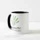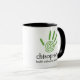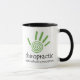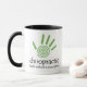 This chiropractic mug features a green spiral hand print and text that says "Chiropractic - Health Without A Prescription."