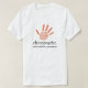 This chiropractic t-shirt features an orange spiral hand print and text that says "Chiropractic - Health Without A Prescription." Customise this t-shirt by adding your practice information on the back.