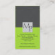 ©2011 Pam's Designs. This chartreuse green & grey plaid monogram chiropractic and medical business card with a walking man silhouette provides a slick, professional look for your medical practice. This medical business card is fully customisable and can be personalised to meet your business needs. This medical monogram business card can also be customised to meet other business needs such as massage therapists physiotherapists, kinesiologists, and other professionals.