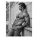 Discover the powerful allure of this striking black and white art print, showcasing a magnificently defined physique leaning against a textured urban backdrop. The subject's gaze is directed outward, conveying a sense of thoughtful reflection and quiet confidence. Every muscle, from the impressive chest and broad shoulders to the sharply defined abs, is highlighted by the classic monochrome palette, emphasising the intricate details of the human form.
