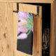 The simple yet dramatic image on this Kitchen Towel is an original photograph by ZoeSPEAK of a flowering chives plant. The closeup photo features one pale lavender flower atop a light bluish green tubular stem. The dark background shows off the beauty of this delicious herb.