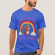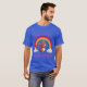 I give wanted to give this a 4 instead of a 5 because these Basic DARK T0shirts run unexpectedly SLIM or Narrow. Which is great if you do not have a potbelly, but I have a paunch. It isn't the shirt's fault that I've got a beer belly. The design and shirt itself is a quality cotton shirt. The color is more of a deep purple, but still a very pretty color. The Basic DARK T-shirts run a bit SLIMMER than the Basic Ts. The neck is a fraction narrower (or seems to be narrower) also. I'm a paunchy middle-aged woman and my neck is 12 inches (31cm) thick and the neckline fell about the same as in the photo of the man, and I had the desire to tug it a bit. So if you're a thick necked man or like loose shirts, be aware these are slimmer shirts. Once I get rid of my lockdown paunch it'll look great. The shirt washed well in cold water with no apparent bleeding. We don't have a dryer, so it hung dry. Did not shrink. Love the colors and the design. The design looks smaller on my shirt than it does on the model on-line. But still, it looks good on the shirt. The printing looks as it does on the model, just the size seems fractionally smaller. Washed garment in cold water, hung dry and design appeared unaffected.