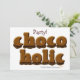 It says "chocoholic" in what looks like chunks of chocolate with bites taken out of the letter C. The letters are sitting in small puddles of melted chocolate.