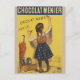 This striking image is an antique image from the late 1800s showing a girl practicing her writing chocolate on the wall. This is a Vintage advertising poster image from 1892. Menier is a French Chocolate company.