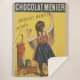 This striking image is an antique image from the late 1800s showing a girl practicing her writing chocolate on the wall. This is a Vintage advertising poster image from 1892. Menier is a French Chocolate company.