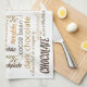 Chocolate, Almonds and Dark Chocolate Text Design Tea Towel