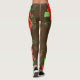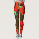 Red floral artistic flowered ladies leggings with chocolate brown background that can be personalised to any colour.