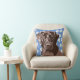 This throw pillow features my portrait of a Chocolate Brown Short Haired Labrador Retriever against a blue background with white flowers. The background colour can be changed..