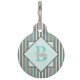 Chocolate Brown & Mint Green Stripes Monogram Pet Tag