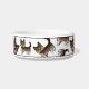 This is a heavy, durable bowl decorated with Tibbies of many colors, the perfect size for hungry/thirsty Tibs. The design is interesting and printing clear.