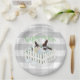 This adorable paper plate features a picket fence basket filled with easter eggs and chocolate easter bunnies on grey gingham background. Personalise it for your needs. You can find matching products at my store.