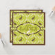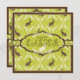 Brown, green, and ivory damask print with sweet polka dot Easter bunnies and 3D-look tag and damask print trim Easter egg hunt invitation.