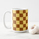 My original digital art on this mug features a vintage style pattern of squares. Artwork is in a colourful mix of chocolate brown and butter yellow for an artsy style. These delicious looking squares and lines have a retro chequerboard vibe for a classic touch.