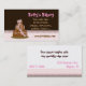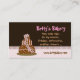 Fun whimsical business card done in tan, pink and dark brown. Cute graphics of a fancy cake decorates the left side of this sweet business card. Perfect for a bakery shop, party shop, or an independant custom baker. Customise the text fields to personalise for yourself or your shop.