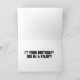 This card is great fun and good quality. I loved the humour inside and on the back. There is the opportunity to change the orientation of this card from landscape to portrait, which I did. It is relatively straightforward to amend the typeface to fit the new orientation. It was well packaged with no plastic. The printing on this card is excellent.