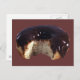 doughnut covered with chocolate with a bite missing, customise the background and copy