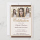 Graduation party invitation featuring your own photos on a cream and chocolate brown background with a golden lining. The "Celebration" text is a gold stylised image in Flemish Script font and you can drag or delete it if you prefer different texts.