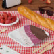 This template design features chocolate, cream, and raspberry colour streams diagonal flows matching the invitation design. Personalise template fields, remove text or edit using the design tool to select a font style, size, and colour you prefer.
