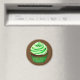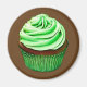 A detailed illustration of a dark chocolate cupcake with pastel green mint frosting