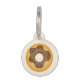 Destei's cartoon illustration of a doughnut with chocolate dressing and colourful sprinkles. On the other side there are personalizable text areas for the name of the pet and for a phone number.