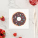 Fun design features chocolate doughnut with pink blue and white sprinkles. Personalise with name or personal message.