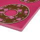 An illustration of chocolate iced or frosted doughnuts (doughnuts) decorated with pink hearts on a hot pink background.