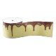 Dripping chocolate icing yellow and white gingham background.