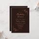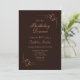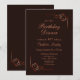 Elegant rich chocolate customisable 50th birthday dinner invitations featuring warm rose gold floral leaf embellished corners to frame the invitation details.