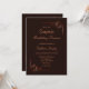 Elegant rich chocolate and cream customisable surprise birthday dinner invitations featuring warm rose gold floral leaf embellished corners to frame the invitation details.
