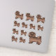 Destei's original cartoon illustration of a cute chocolate brown coat colour Bichon Havanais / Havanese breed dog. The design is placed 12 times on the sheet in three different sizes. There is one bigger dog, three medium size dogs and eight small size dogs.