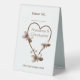 Wedding table number chocolate coloured heart and butterflies design. Customise this chocolate coloured wedding table number with your wedding details. Should you require any help with customising then contact us through the link on this page. Chocolate coloured heart and butterflies design personalised wedding table number
