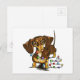 Cute artwork of chocolate & tan Dachshund wrapped in Christmas lights. Art by Andie (c)2014.