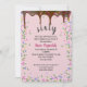 Dripping chocolate icing with colourful candy sprinkles for a 60th birthday party invite.