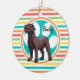 Chocolate Lab; Bright Rainbow Stripes Ceramic Tree Decoration