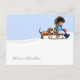 Send warm wishes this winter with customisable postcards featuring this cute design. Child and dog sledding in the snow whimsical illustration. (c) 2010 Off-Leash Art.