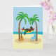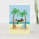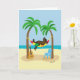 Chocolate Labrador and Hammock and Palm Trees Card for Labrador Fans! Super relaxed dog enjoys his/her nap time in his/her favourite place. Created by Naomi Ochiai.