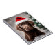 Cute Chocolate Labrador puppy wearing a Santa hat.