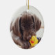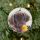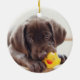 Chocolate Labrador Puppy With Toy Duck Ceramic Tree Decoration