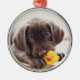 Chocolate Labrador Puppy With Toy Duck Metal Tree Decoration