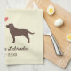Chocolate Labrador Retrievers with Heart and Text Tea Towel